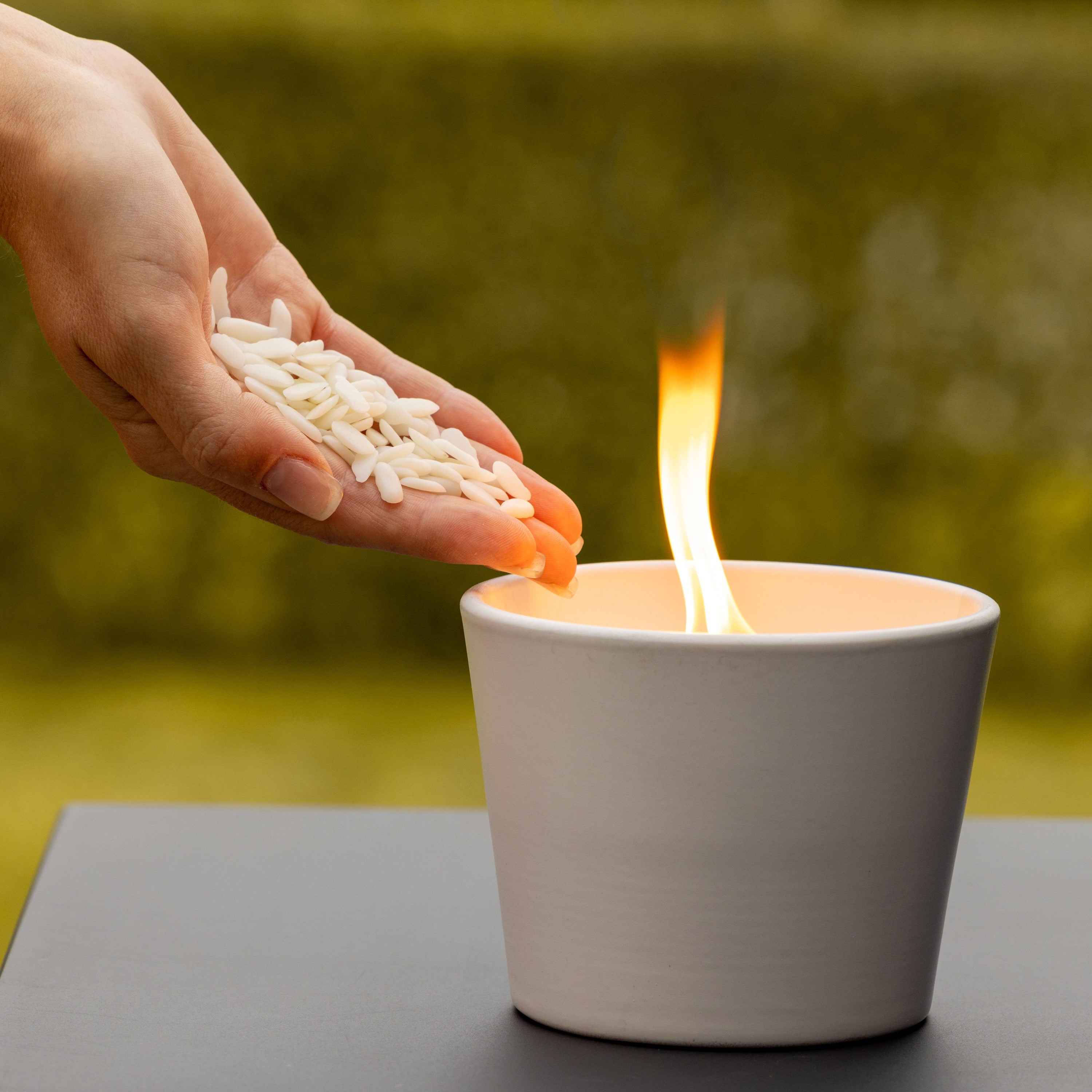 Unsere Wachsfresser bestehen ausschließlich aus Raps-Kokoswachs, was sie zu einer umweltfreundlichen Wahl für alle macht, die sich für die Umwelt engagieren möchten. Raps-Kokoswachs ist biologisch abbaubar und verursacht keine schädlichen Emissionen, wenn es verbrannt wird.